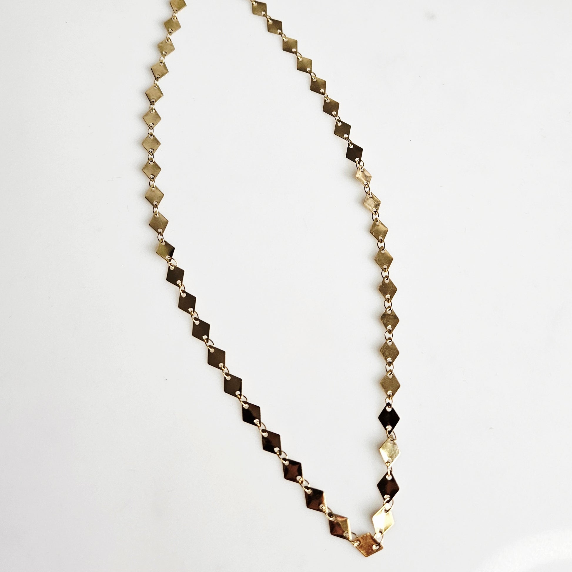 Ce choker est composé de petits losanges qui reflètent la lumière. Un bijou minimaliste et tendance, parfait à porter seul ou en superposition.