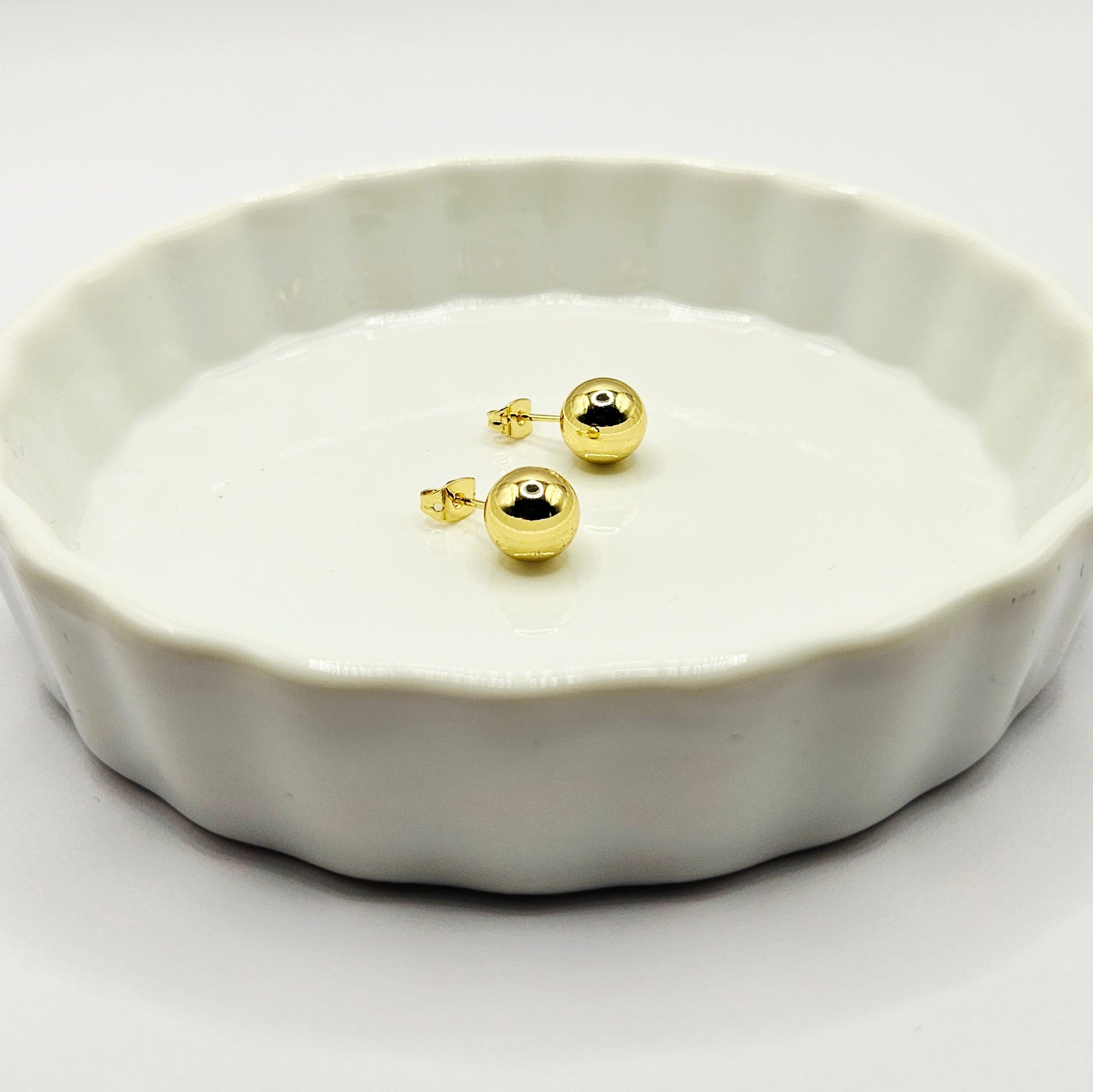 Ces clous d'oreilles intemporels en forme de boule polie offrent un éclat parfait et subtil. Essentiels pour un style minimaliste au quotidien ou idéaux pour le deuxième et troisième perçage dans une accumulation chic.