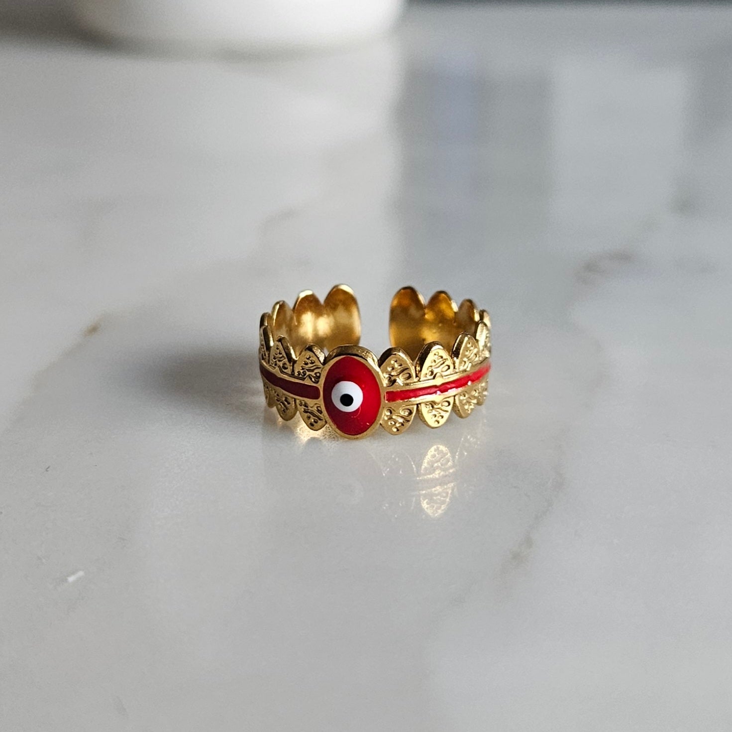 Le Regard Protecteur (Bague Ajustable Dorée) - Pièces uniques