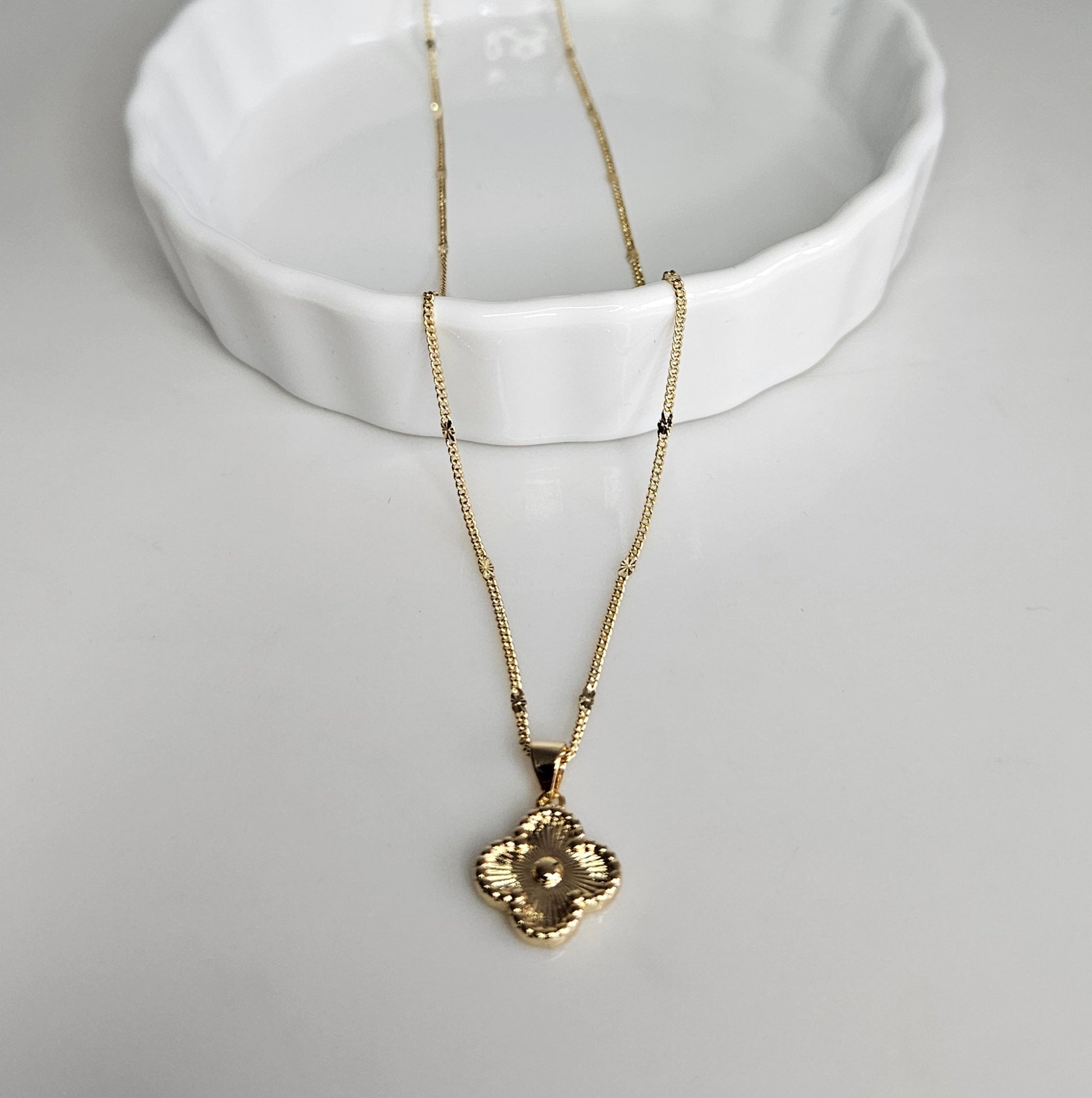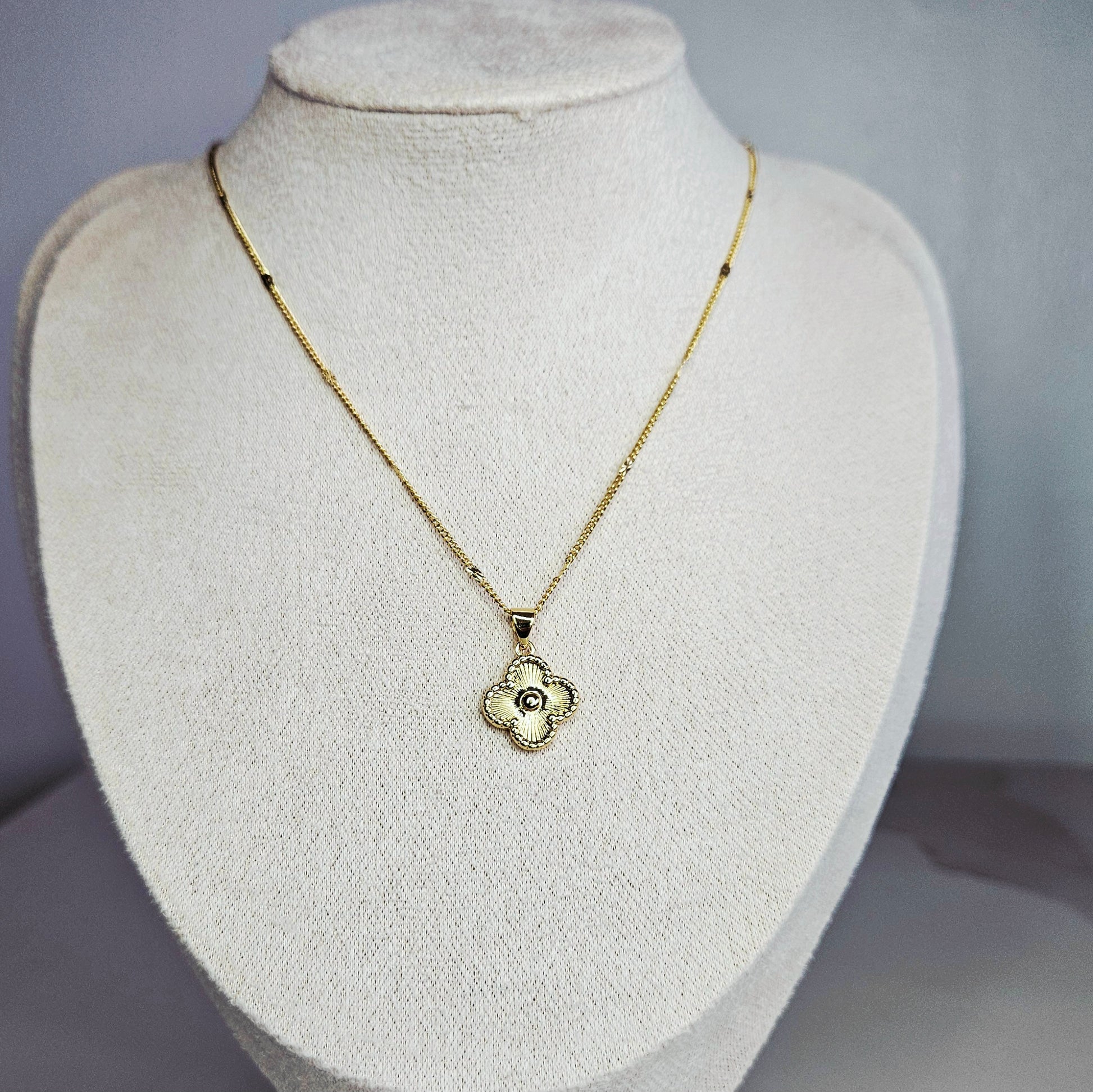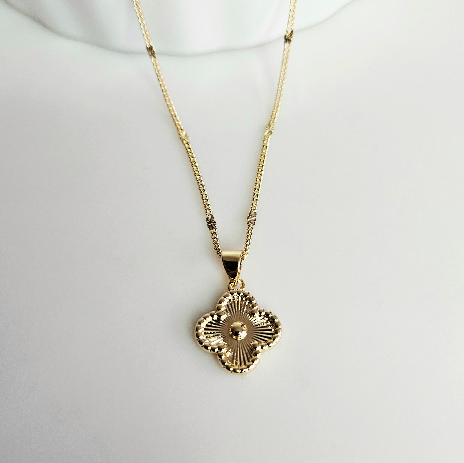 🍀| Pièce Unique | Pendentif Trèfle | Chaîne Perlée 45 cm | Doré Rhodium | Fermoir mousqueton.