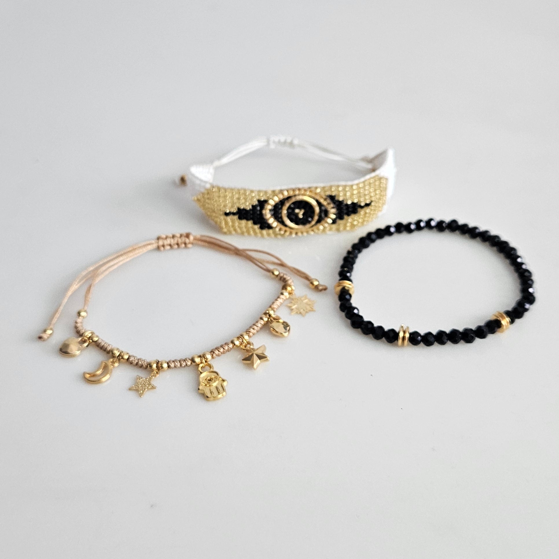 L'ensemble de bracelets Rêve est l'accessoire parfait pour un look audacieux et chargé de sens. Il est composé de trois pièces pensées pour être portées ensemble.